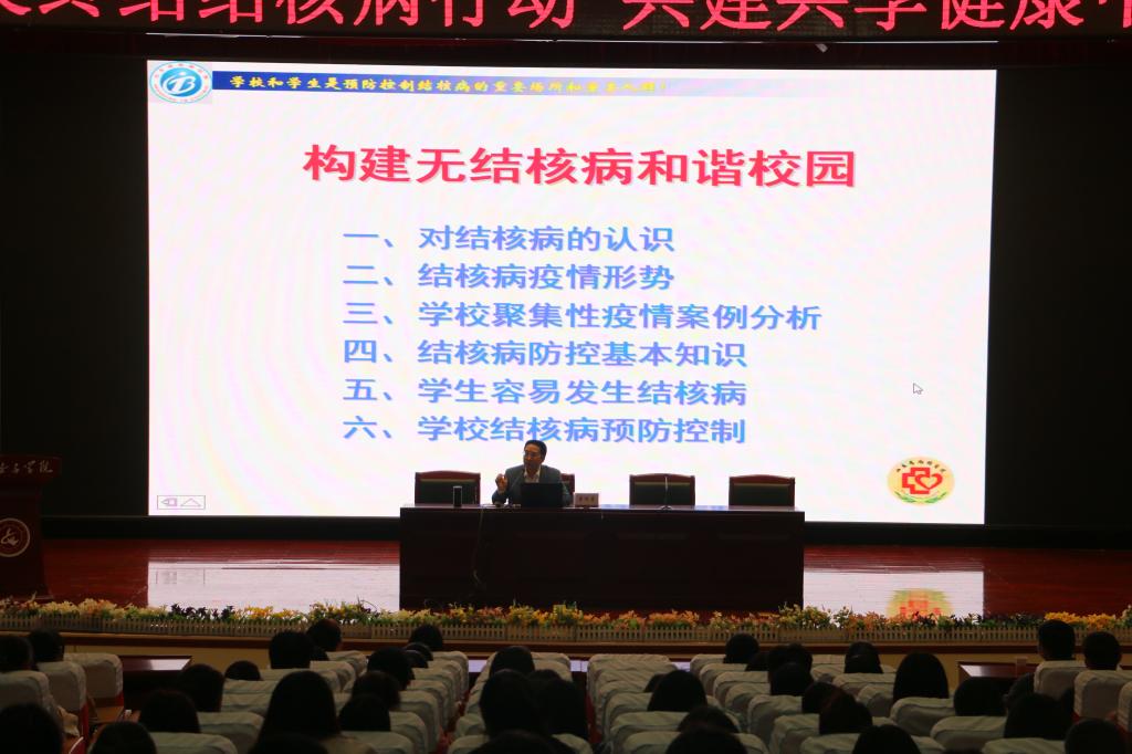 为了普及结核病防治知识,倡导健康向上的生活方式,在全校范围内营造健康快乐的和谐氛围。2019年3月14日下午,校医院联合工会及学生处,特邀全国结核病学科科学传播专家王仕昌, 为我校师生进行结核病知识专题讲座。本次讲座涉及到各个二级学院,受益听众数百余人,通过王仕昌主任的精彩讲授,大家对结核病防治核心信息及知识要点了然于心,王仕昌主任结合高校实际,针对性的开展宣教,引导学生树立个人是健康的第一责任人的意识,养成多通风、不随地吐痰等良好卫生习惯。出现咳嗽、咳痰两周及以上等结核病可疑症状应佩戴口罩、及时就诊。