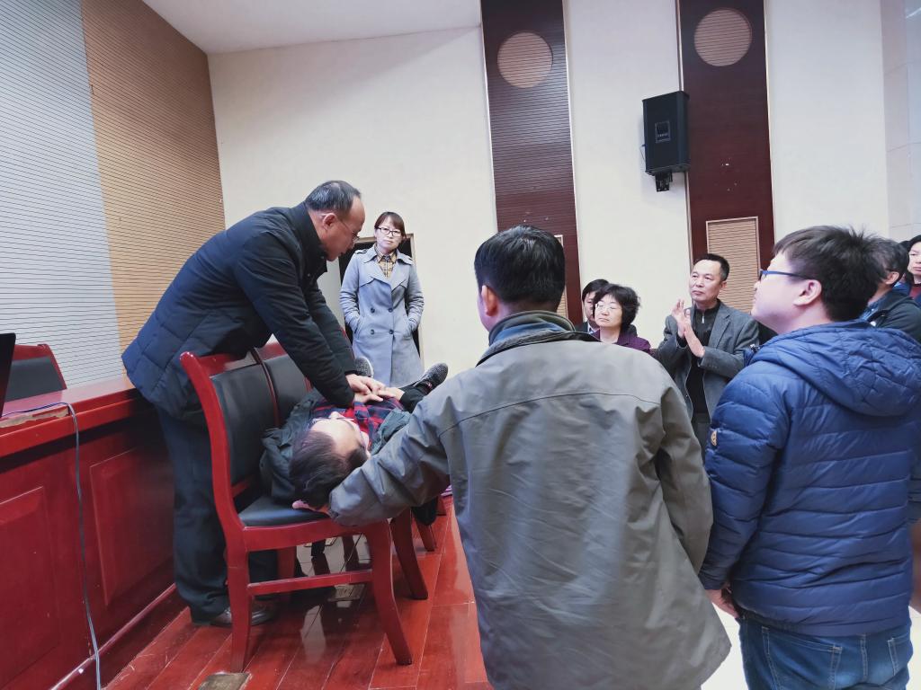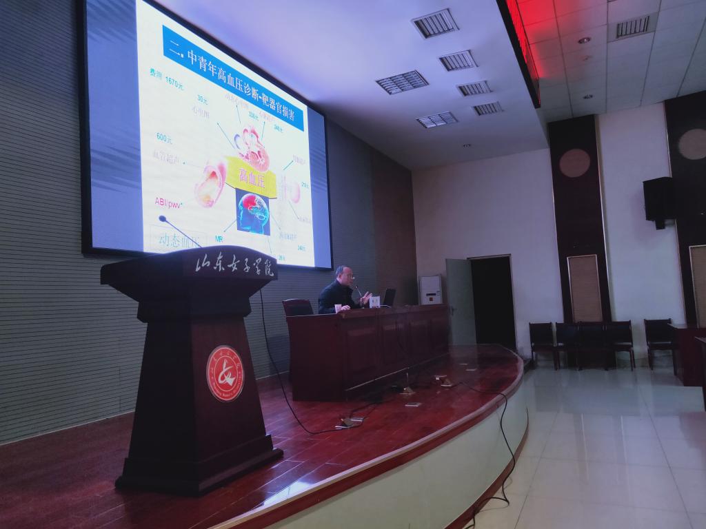 为了更好地向我校教职工普及心血管病预防知识,有效防范各类心血管病的发生、发展,2019年4月11日,我校后勤处(校医院)、工会妇委会联合,特邀请到了山东省千佛山医院保健心内一科主任杨广教授,来我校讲授心血管病的预防前沿知识讲座。各分会职工积极参与,杨广教授的精彩讲授受到了一致好评,讲座完毕,数名职工就自身及家属身体问题踊跃提问,杨教授一一给于解答,并演示心肺复苏术。本次讲座对我校教职工在心血管病预防方面的正确认识有积极意义。