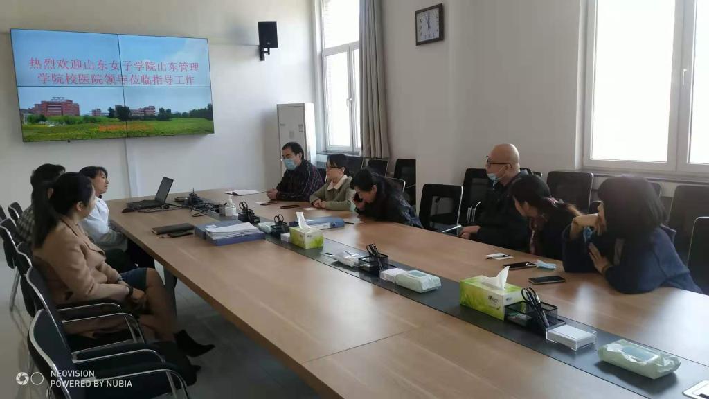 2020.11.11上午校医院分管学校疾控以及分管药房的工作人员在苗院长的带领下,参观学习了山东交通学院校医院。一同前往的还有山东工会管理干部学院校医院一行四人。交通学院校医院沈秀峰院长、分管疾控的闫医师及王护士长参会,沈院长首先介绍了交通学院的校医院概况。交流了结核病、艾滋病等主要传染病防控的细节方法、传染病防控知识宣传教育、药物品种以及目前紧张进行的新冠疫情防控常态化等诸多问题。
