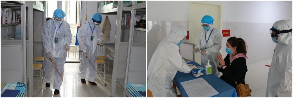在新冠肺炎疫情防控中,后勤管理处班子成员和各中心分别承担全校统筹协调、防控救治、宣传培训和服务保障等各项工作,全体人员坚持把疫情防控放在首位,放弃节假日,坚守一线,分工合作,先后多次开展全校师生的防疫培训、传染病防治、模拟演练和应急处置演练,多方采购防控物资,加强通勤班车管理服务,严格人员进入和体温检测,做好室内外环境保洁和消杀,确保饮食安全有序,有力地保障了校园安全和师生健康。2020年,学校物业管理服务中心被评为“山东省高校后勤系统新冠肺炎疫情防控工作先进集体”,张传瑜被评为疫情防控先进个人。