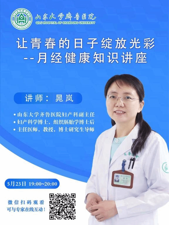 为提高女性妇科内分泌和生殖健康知识水平,增强自我保健意识,5月23日,我校青春健康同伴社联合山东大学齐鲁医院妇产科生殖医学中心,组织了一场以“让青春的日子绽放光彩--月经健康知识”为主题的线上专题讲座。