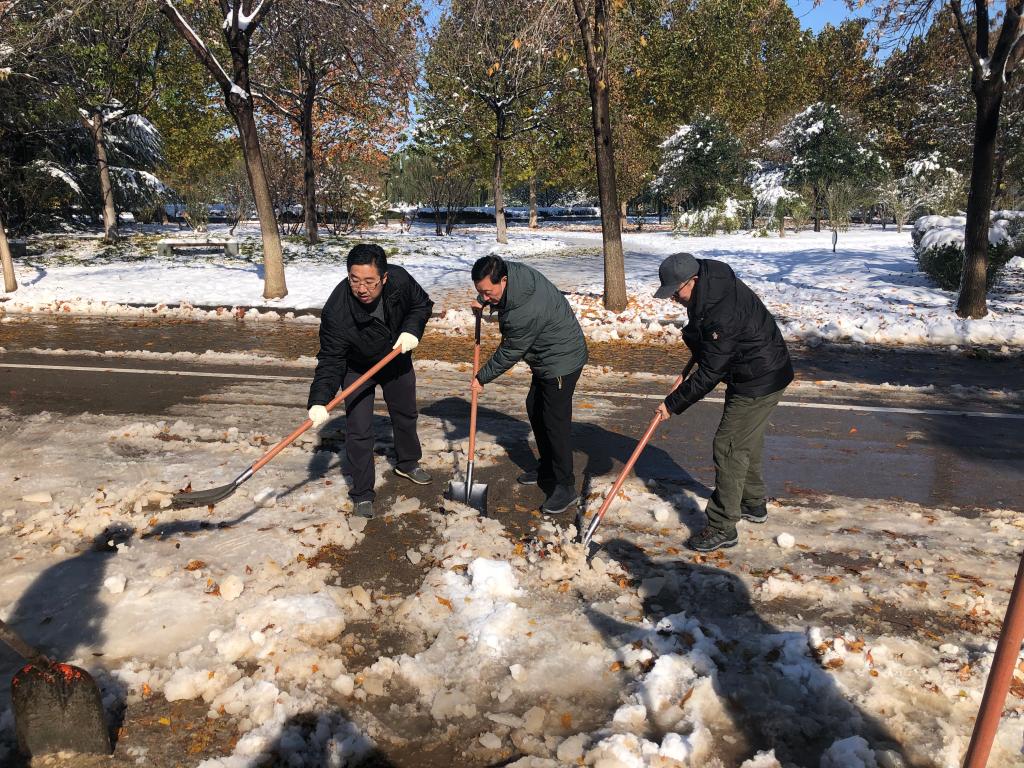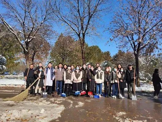 11月8日上午,后勤第一党支部组织党员以雪为令,及时清扫道路积雪,以实际行动带头保障校内交通安全和环境整洁。
