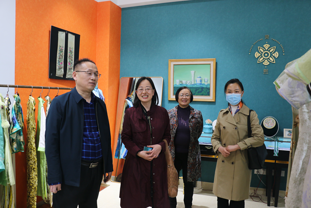 讲座开始之前,武焕玲一行实地考察了山东女子创业大学、旗袍、扎蜡染、汉服等中华优秀传统文化工作室。