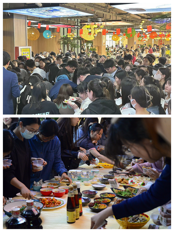 2023年4月18日至4月21日,学校第二餐厅承办第一届“食安美食品鉴会”活动,承办方对餐厅日常使用的各种主、副食及原材料进行了全面展示,让全校师生对所用原材料有一个直观的了解,并接受师生们对基础食材的监督。品鉴会现场准备了品类繁多的特色美食,供师生免费享用。在18日品鉴会的开幕式上,切分、品尝蛋糕的环节吸引了大量学生参加;21日的闭幕式,“放飞气球、成就梦想”更是将活动气氛推向了高潮。