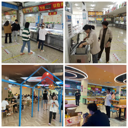 四、保障餐饮服务。生活服务中心坚持每日检查食品安全,督促各餐厅在食材选择、卫生保洁、做饭分餐等方面正常供应,保障假期在校师生吃到可口饭菜。