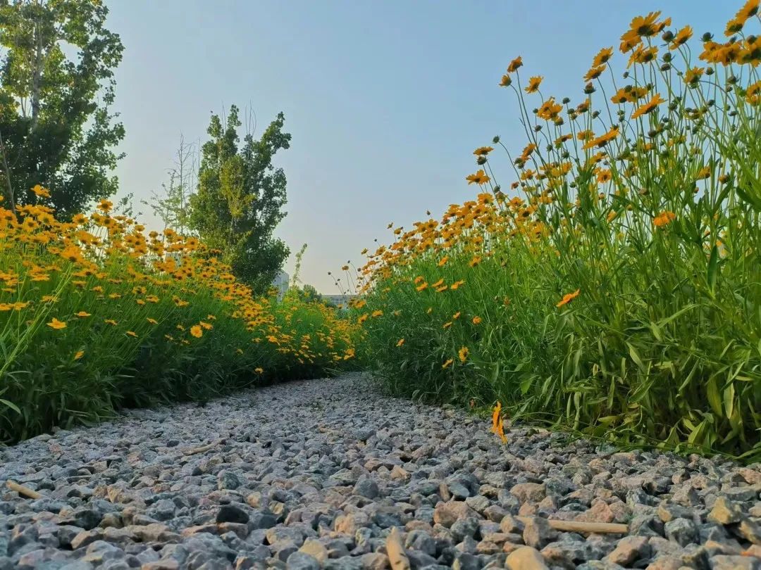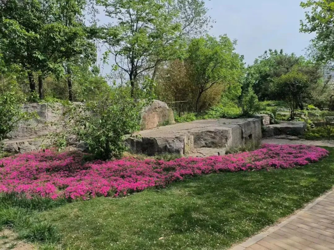 如今,王府东路自南向北按照“天道酬勤”石景、“自然叠水”、“静谧花园”的顺序,打造了一系列风格迥异又融为一体的特色景观;又以景松为主景树种,因地制宜搭配种植迎春、马蔺、火焰南天竹、欧石竹、鸢尾、水生鸢尾、麦冬、丛生福禄考等错落有致的植物,让王府路成为移步换景、一季一景的靓丽风景线。
