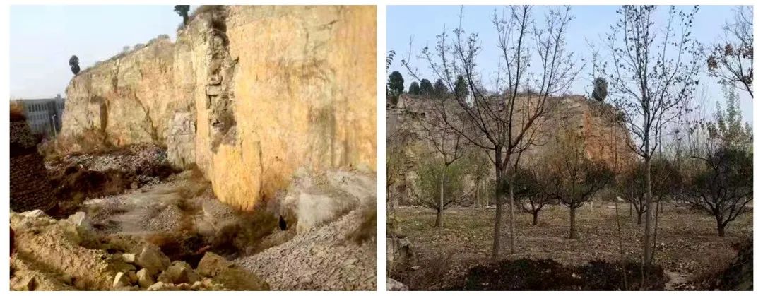 学校东南侧的龟山,建校前原为当地采石场与石灰烧制地,山崖陡峭,山顶仅存少量侧柏、刺槐、杂草等,大部分为裸露的山石,时有山石松动脱落现象发生,冬季防火难度较大,安全隐患高,当时几乎可以用“危山”来形容。