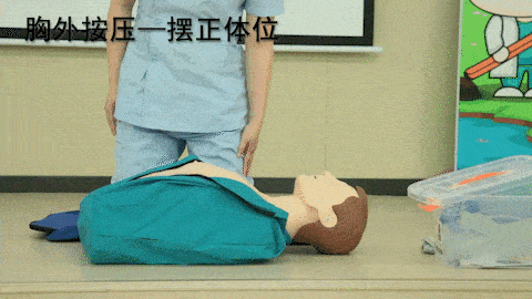 救护员双腿跪于伤病员一侧,摆正伤病员体位,使其仰卧,并处于坚固平整硬质地面上或平板床上。(如果病人所处环境还有发生风险的可能或不适合抢救的地点,应尽快转移病人至符合上述条件的地点,以便进行下一步抢救措施)