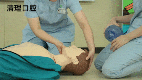 仰头抬颌法,口腔无分泌物,无假牙。