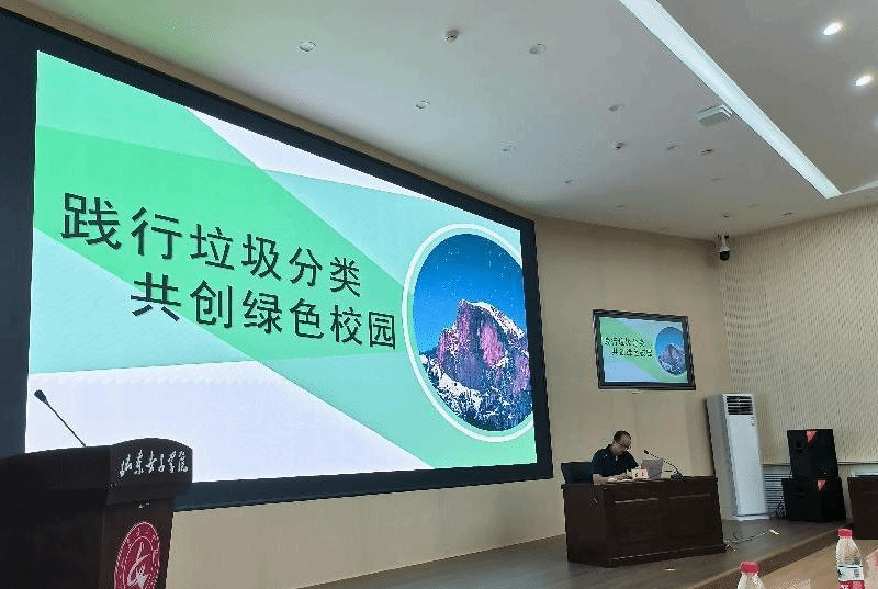 6月8日下午,崮云湖街道办事处、后勤管理处(基建处)、学生工作处(部)在求真楼报告厅共同举办“践行垃圾分类,共创文明校园”教育实践活动。崮云湖街道办事处宣讲员吕蒙做了宣讲,崮云湖街道城管党总支书记姚平、党支部书记刘晶、村镇办主任周震等人,学校后勤管理处(基建处)处长王仕忠、副处长王大伟,学生工作处副处长赵贵阳,以及部分教职工代表和各学院学生代表参加了教育签名和垃圾分类实践活动。