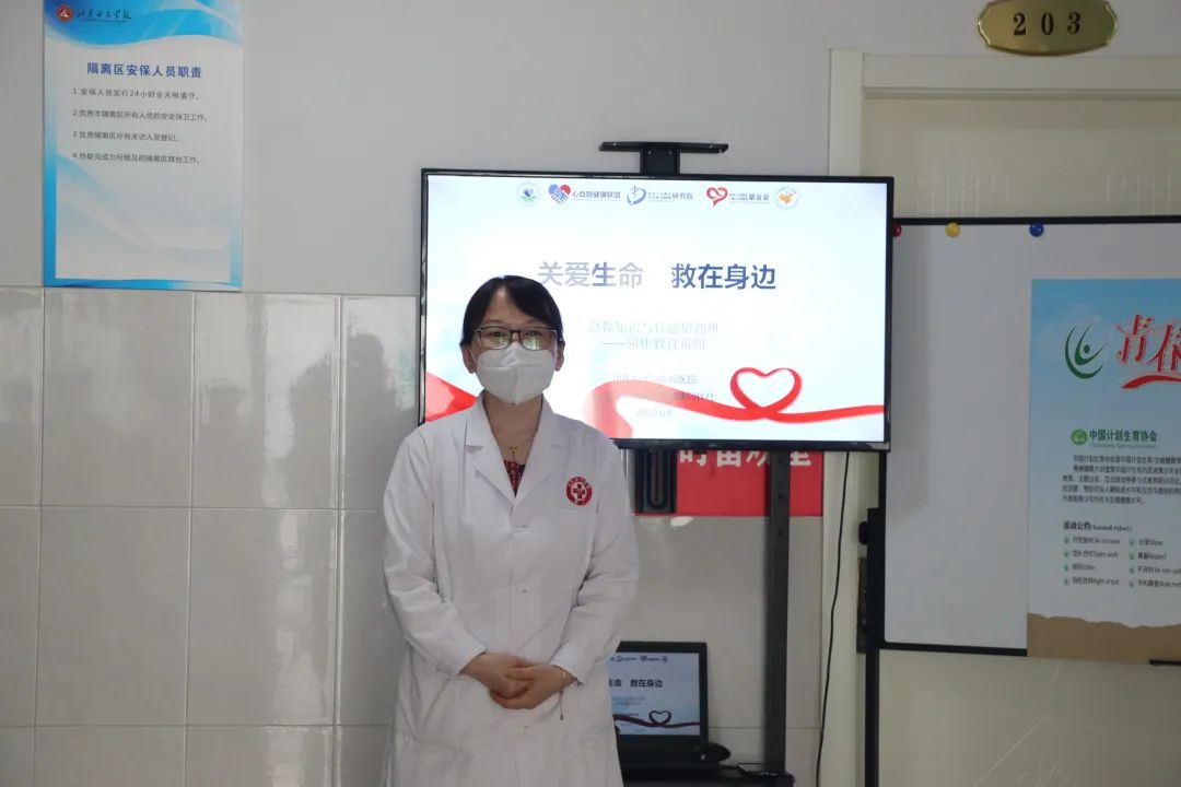 为进一步贯彻落实《健康中国行动(2019-2030 年)》、《山东女子学院生命教育工作方案》等文件精神,切实提高学校师生的院前急救素养,山东女子学院校医院专业医护人员在学校青春健康俱乐部于2023年6月8日下午举办了第一期“关爱生命,救在身边”2023年急救知识与技能同伴教育培训班。