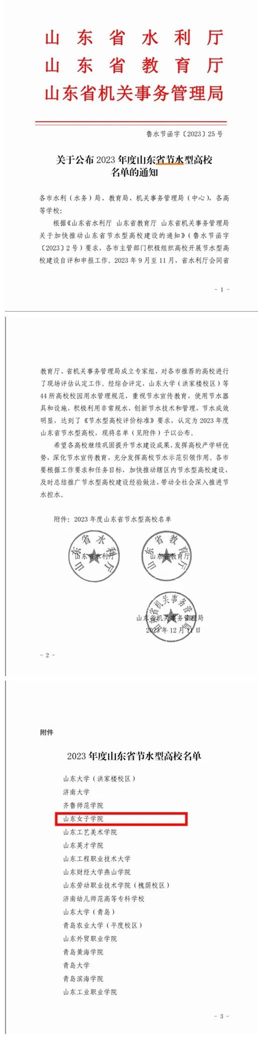 近日,山东省水利厅、山东省教育厅、山东省机关事务管理局联合发布了《关于公布2023年度山东省节水型高校名单的通知》,学校荣获“山东省节水型高校”称号,这是继2022年学校荣获“山东省绿色学校”称号以来,在生态文明建设方面取得的又一新成果,标志着学校生态文明建设又迈上了一个新台阶。