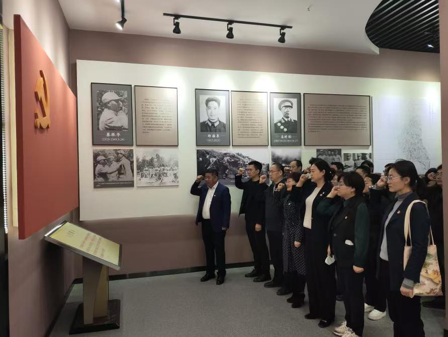 在石麟山烈士陵园庄严的国歌声中,全体党员和教职工首先列队向在抗日战争和解放战争中牺牲的革命英烈鞠躬默哀,并敬献花篮和鲜花,并依次瞻仰革命烈士英名录和烈士墓。在长清区革命英雄事迹展览馆,一幅幅珍贵的历史照片、一段段震撼的英雄事迹,生动再现了革命先烈浴血奋战的光辉历程,全体党员面向党旗,高举右拳,庄严宣誓,“我志愿加入中国共产党,拥护党的纲领,遵守党的章程,履行党员义务,执行党的决定,严守党的纪律,……”,铿锵有力的誓言向英烈们彰显新时代共产党员不忘初心、牢记使命,遵守中央八项规定,担当作为,砥砺奋进的坚定决心。