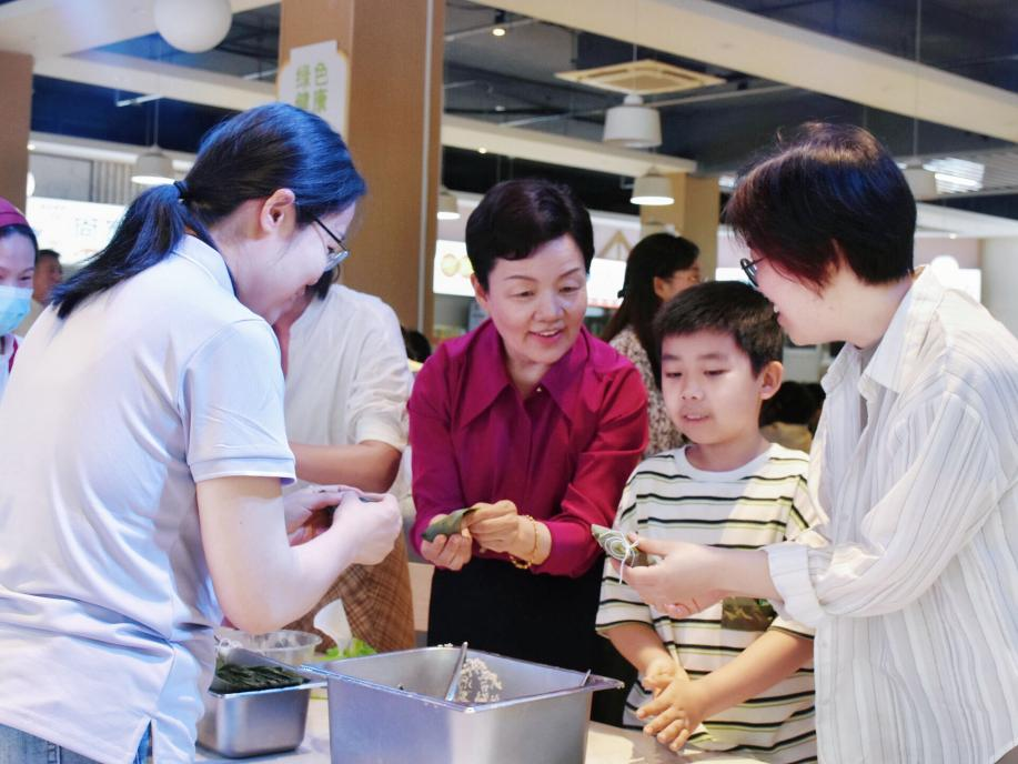 午餐时分,田立新和主办部门负责人为包粽子比赛获奖的小朋友颁发了奖品,并和各餐厅服务人员包好煮熟了一盘盘口味不同的甜粽子。在浓郁的传统节日气氛里,前来就餐的教职工和同学们一边欢喜的品尝着甜甜的粽子,一边互相道着“谢谢”和“端午安康”的祝愿,师生们高兴的沉浸在浓浓的端午甜粽飘香中,感受着校园里暖暖的师生情谊,激励着师生们更加在女院、知女院、爱女院、建女院,为学校高质量发展再做新贡献。(撰稿:宫靖荃、贾 琰 、吴博;审核:李丽华、王仕忠、路敏)