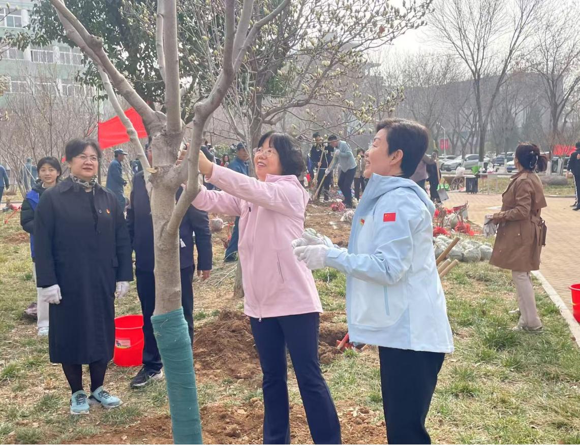 党委委员、副校长田立新在植树节启动仪式上要求师生在习近平生态文明思想指引下,牢固树立和践行绿水青山就是金山银山的理念,推进美丽中国建设,建设人与自然和谐共生的现代化。倡议师生以“履行植树义务,共建美丽校园”为主题,共同践行“在女院、知女院、爱女院、建女院”的庄严承诺,携手以"红妆""绿意",共""生态梦",共同谱写"春有百花秋有月,夏有凉风冬有雪"的美丽画卷,为学校生态文明建设赋入绿色新动能。