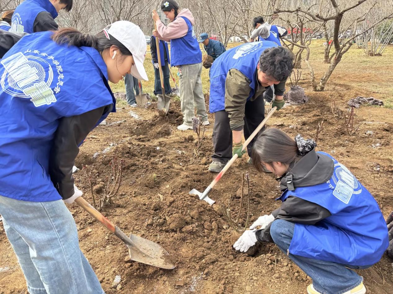 校领导和师生们共同种下象征坚韧与希望的玉兰木槿、牡丹、芍药、玫瑰和月季等苗木大家精神抖擞,干劲十足,分工合作,挖坑放苗、扶正培土、取水灌溉,新栽植的玉兰、木槿、玫瑰和月季等迎风挺立,生机盎然