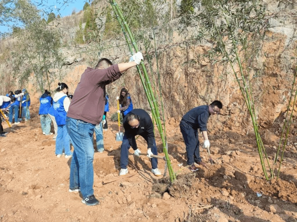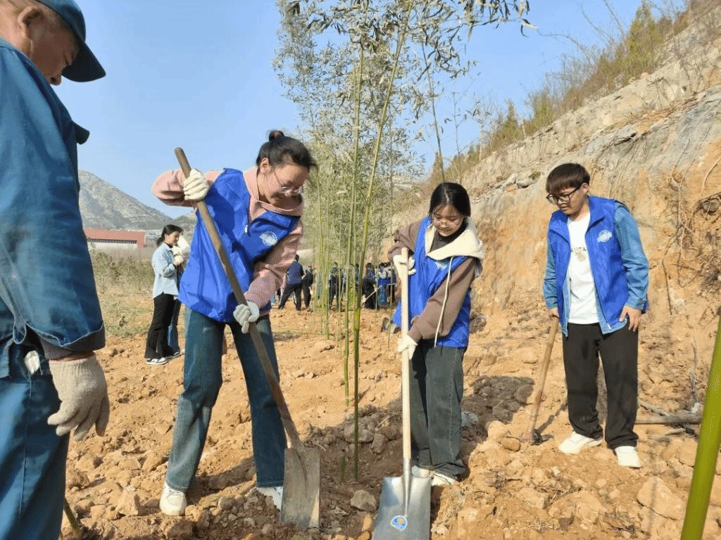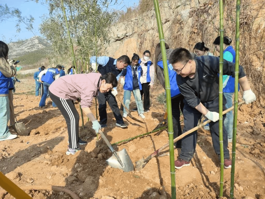 党委委员、副校长田立新带领后勤管理处(基建处)、团委、合作发展处等部门教职工以及学生志愿者50余人在龟山片区开展植树活动。师生们精神抖擞,干劲十足,分工合作,井然有序。通过挖坑放苗、扶正培土、取水灌溉,新栽植的绿竹和补栽的雪松迎风挺立,绿意盎然。