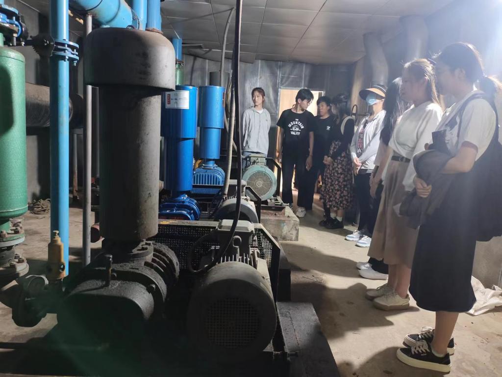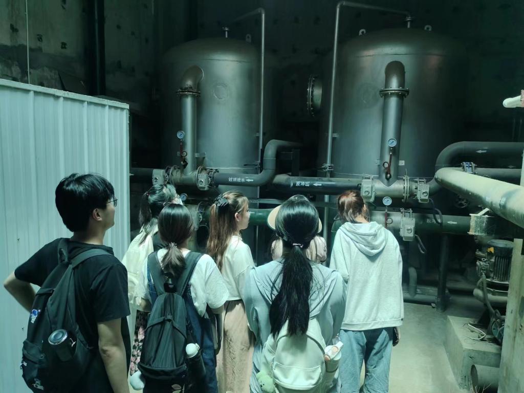 在工作人员引领下,同学们来到中央控制室,听取公司概况、企业进水水质要求等情况介绍,了解了与污水处理相关的专业知识。随后实地参观污水处理生产线,包括中水处理站的进水口、格栅、调节池、缺氧池、好氧池、中控室以及清水池,对中水处理系统有了基本的了解。了解污水处理设备设施功能作用,直观感知污水是如何一步步从又黑又臭变成清澈透明。