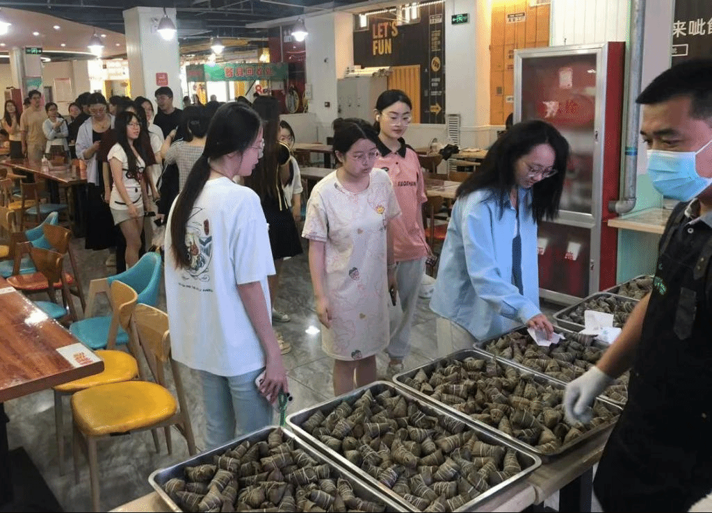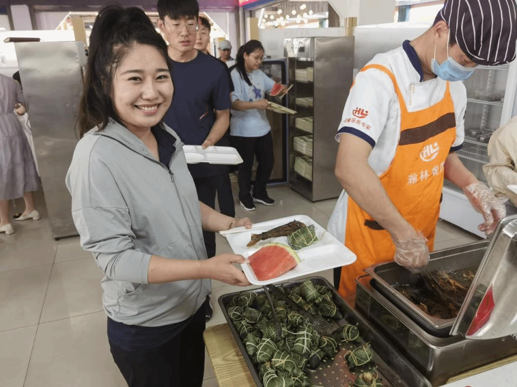 午餐时分,田立新和主办部门负责人为包粽子比赛获奖的小朋友颁发了奖品,并和各餐厅服务人员包好煮熟了一盘盘口味不同的甜粽子。在浓郁的传统节日气氛里,前来就餐的教职工和同学们一边欢喜的品尝着甜甜的粽子,一边互相道着“谢谢”和“端午安康”的祝愿,师生们高兴的沉浸在浓浓的端午甜粽飘香中,感受着校园里暖暖的师生情谊,激励着师生们更加在女院、知女院、爱女院、建女院,为学校高质量发展再做新贡献。(撰稿:宫靖荃、贾  、吴博;审核:李丽华、王仕忠、路敏
