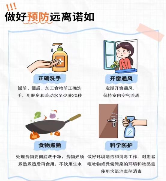 诺如病毒感染属于自限性疾病,目前无特效药物和疫苗。最重要的是做好预防,治疗以对症支持(如止吐、止泻)和补充水分为主,防止脱水。如果症状严重(如持续高热、频繁呕吐腹泻、出现脱水体征等),应及时就医。让我们共同行动起来,做好个人防护,维护校园健康环境!